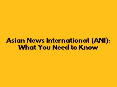 Asian News International (ANI): What You Need To Know