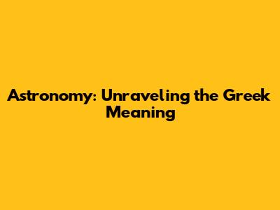 Astronomy: Unraveling The Greek Meaning