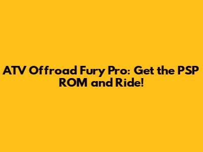 ATV Offroad Fury Pro: Get The PSP ROM And Ride!