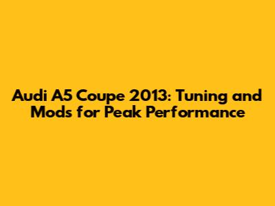 Hey guys! Let's dive into how to seriously upgrade your 2013 Audi A5 Coupe. We're talking about taking that already sweet ride and making it even better through some choice tuning and modifications. Whether you're after more power, sharper handling, or just a unique look, this guide's got you covered. So, buckle up and let's get started!