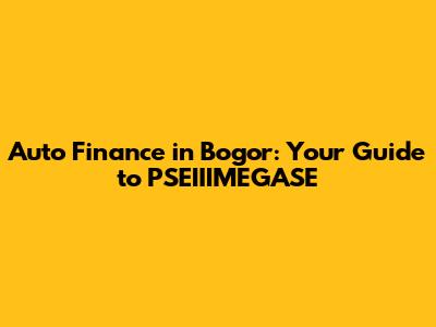 Auto Finance In Bogor: Your Guide To PSEIIIMEGASE