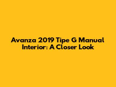 Avanza 2019 Tipe G Manual Interior: A Closer Look