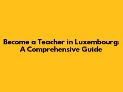 Become A Teacher In Luxembourg: A Comprehensive Guide