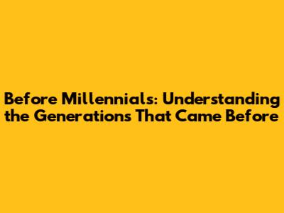 Hey guys! Ever wondered about the folks who came before the millennials? You know, the ones who shaped the world we live in today, the ones who influenced millennials themselves? Well, let's dive into the generations that paved the way. We're talking about the silent generation, the baby boomers, and Gen X. It's like a history lesson, but way more interesting, promise! Understanding these generations isn't just about dates and names; it's about understanding the values, experiences, and historical events that molded them, ultimately influencing the world we know. This is crucial for understanding how we've arrived where we are today.