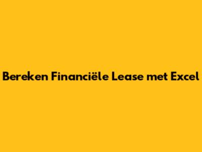 Bereken Financiële Lease Met Excel