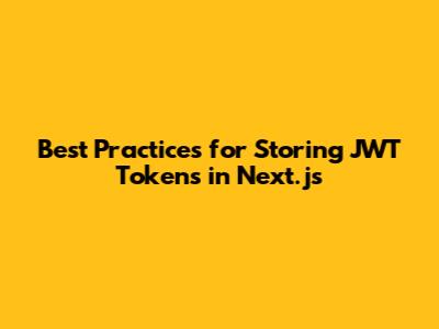 Best Practices For Storing JWT Tokens In Next.js