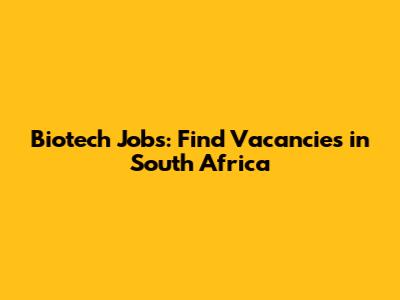 Biotech Jobs: Find Vacancies In South Africa