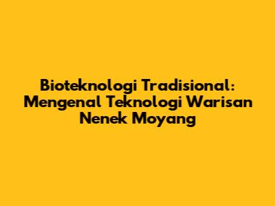 Bioteknologi Tradisional: Warisan Teknologi Ramah Lingkungan
