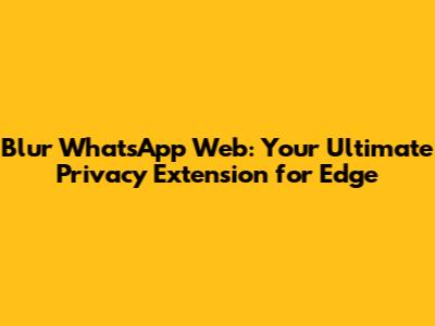 Hey guys! Ever been in a situation where you're checking your WhatsApp Web at work or in a public place and you're worried about prying eyes? Well, worry no more! I'm super excited to introduce you to the Blur WhatsApp Web extension for Microsoft Edge. This nifty tool is designed to give you that much-needed privacy boost, ensuring your personal conversations remain just that – personal!