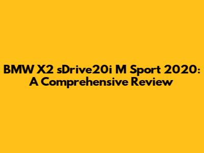 BMW X2 SDrive20i M Sport 2020: A Comprehensive Review