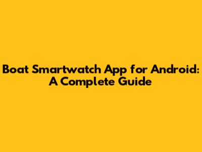 Boat Smartwatch App For Android: A Complete Guide