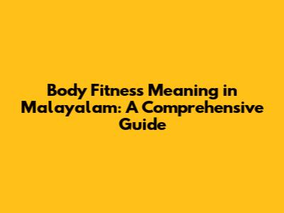 Body Fitness Meaning In Malayalam: A Comprehensive Guide