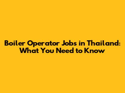 Boiler Operator Jobs In Thailand: What You Need To Know