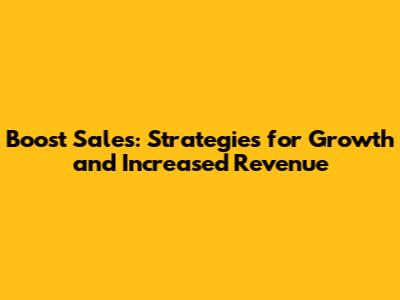 Boost Sales: Strategies For Growth And Increased Revenue