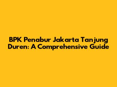 BPK Penabur Tanjung Duren: A Comprehensive Guide