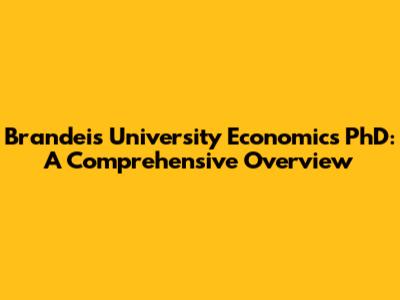 Brandeis Economics PhD: A Comprehensive Overview