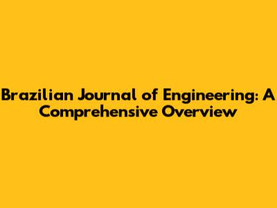 Brazilian Journal Of Engineering: A Comprehensive Overview
