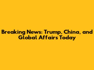 Breaking News: Trump, China, And Global Affairs Today