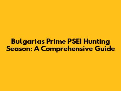 Bulgaria's Prime PSEI Hunting Season: A Comprehensive Guide