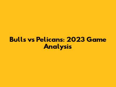 Bulls Vs Pelicans: 2023 Game Analysis