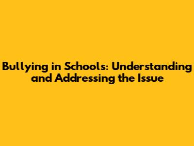 Bullying In Schools: Understanding And Addressing The Issue