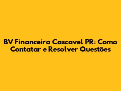 BV Financeira Cascavel PR: Como Contatar E Resolver Questões