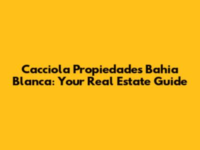 Cacciola Propiedades Bahia Blanca: Your Real Estate Guide