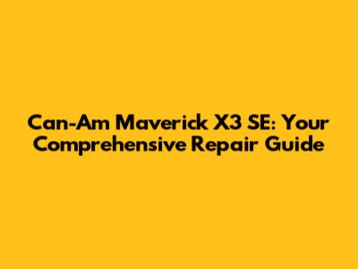 Can-Am Maverick X3 SE: Ultimate Repair Guide