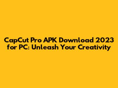 CapCut Pro APK Download 2023 For PC: Unleash Your Creativity