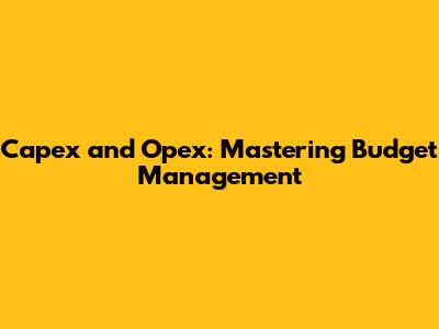 Capex And Opex: Mastering Budget Management