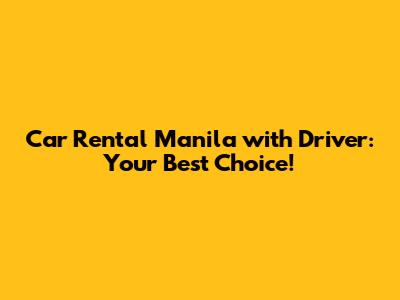 Car Rental Manila With Driver: Your Best Choice!