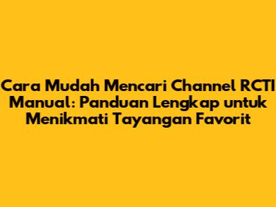 Hai, guys! Pernahkah kalian mengalami kesulitan saat ingin menonton RCTI dan channel favorit lainnya? Jangan khawatir, karena dalam artikel ini, kita akan membahas cara mencari channel RCTI manual dengan mudah dan praktis. Kita akan kupas tuntas langkah-langkahnya, mulai dari persiapan awal hingga proses pencarian yang efektif. Jadi, siap-siap untuk menikmati tayangan RCTI kesayanganmu!
