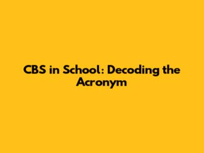 CBS In School: Decoding The Acronym