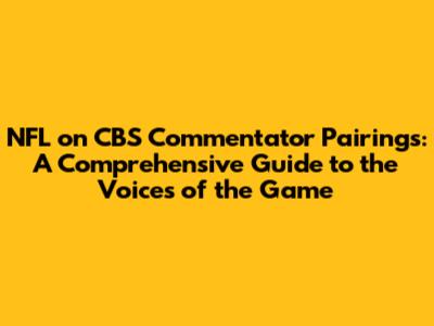 The NFL on CBS commentator pairings play a vital role in bringing the excitement and drama of the NFL to viewers each week. From the lead team of Jim Nantz, Tony Romo, and Tracy Wolfson to the other talented pairings, each broadcast team brings its unique strengths and expertise to the booth. Understanding these pairings can enhance your viewing experience, providing you with a deeper appreciation for the game and the individuals who bring it to life. So, next time you tune in to an NFL on CBS broadcast, take a moment to appreciate the commentators who work tirelessly to deliver an engaging and informative viewing experience. Their passion for the game and dedication to their craft make them an integral part of the NFL experience.
