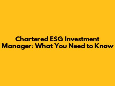 Chartered ESG Investment Manager: What You Need To Know