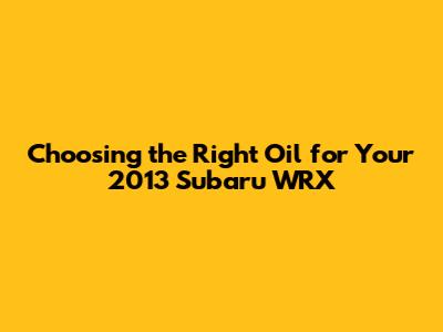 Hey there, gearheads! Let's dive into something super crucial for keeping your 2013 Subaru Impreza WRX running like a champ: the right oil. Choosing the perfect oil isn't just about picking any old bottle off the shelf; it's about understanding what your WRX needs to thrive. This guide will walk you through everything you need to know, from the ideal oil type to why it matters, ensuring you keep that turbocharged beast purring smoothly for years to come. Buckle up, and let's get started!