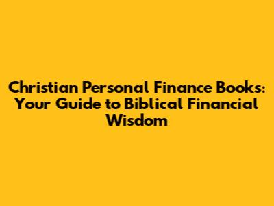 Christian Personal Finance: Books To Guide Your Finances