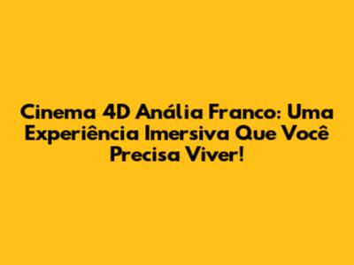 E aí, galera cinéfila! Hoje vamos falar de um lugar que vai explodir a sua mente: a Sala de Cinema 4D Anália Franco. Se você acha que já viu de tudo em termos de ir ao cinema, prepare-se para mudar de ideia, porque a experiência 4D é outro nível de imersão total. Sabe quando você assiste a um filme e sente que está dentro da ação? É exatamente isso que a tecnologia 4D proporciona, e a unidade do Anália Franco está mandando muito bem em oferecer isso pra gente.