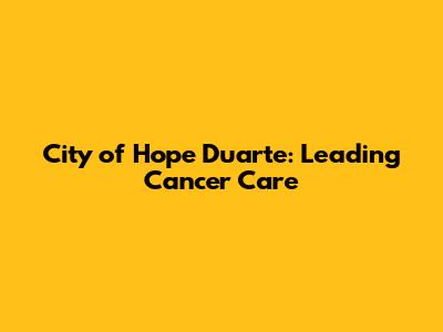 City Of Hope Duarte: Leading Cancer Care