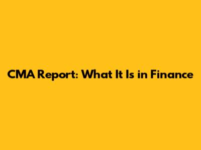 CMA Report: What It Is In Finance