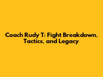 Coach Rudy T: Fight Breakdown, Tactics, And Legacy