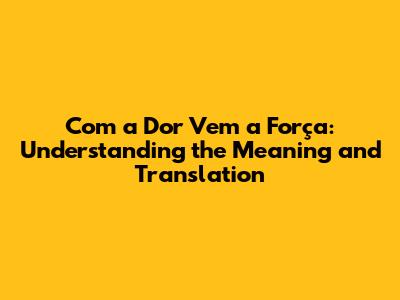 Com A Dor Vem A Força: Meaning And Translation