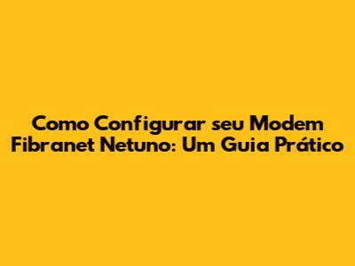 Como Configurar Seu Modem Fibranet Netuno: Um Guia Prático