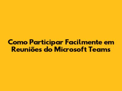 Como Participar Facilmente Em Reuniões Do Microsoft Teams