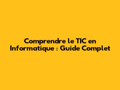 Comprendre Le TIC En Informatique : Guide Complet