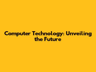 Computer Technology: Unveiling The Future