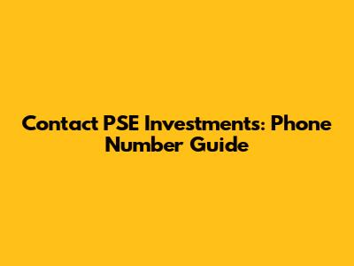 Contact PSE Investments: Phone Number Guide