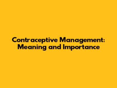 Contraceptive Management: Meaning And Importance