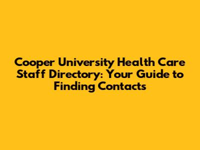Cooper University Health Care Staff Directory: Find Your Contact