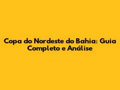 Copa Do Nordeste Do Bahia: Guia Completo E Análise